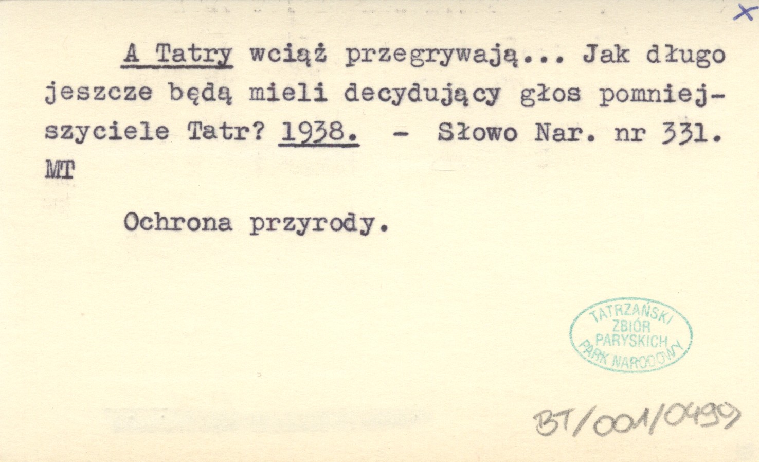 A Tatry wciąż przegrywają ... Jak długo jeszcze będą mieli decydujący głos pomniejszyciele Tatr? 1938
