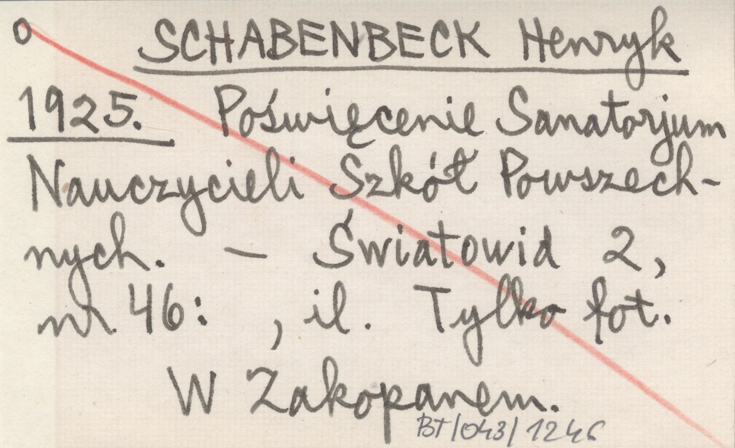 SCHABENBECK Henryk 1925 Poświęcenie Sanatorjum Nauczycieli Szkół Powszechnych.