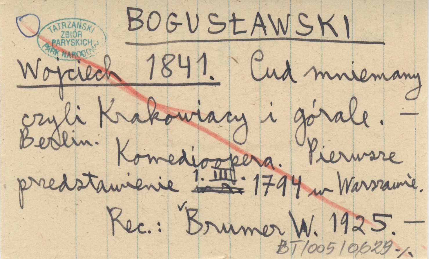 BOGUSŁAWSKI Wojciech 1841 Cud mniemany czyli Krakowiacy i górale.
