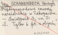 SCHABENBECK Henryk 1926 Pełny sezon w Zakopanem.