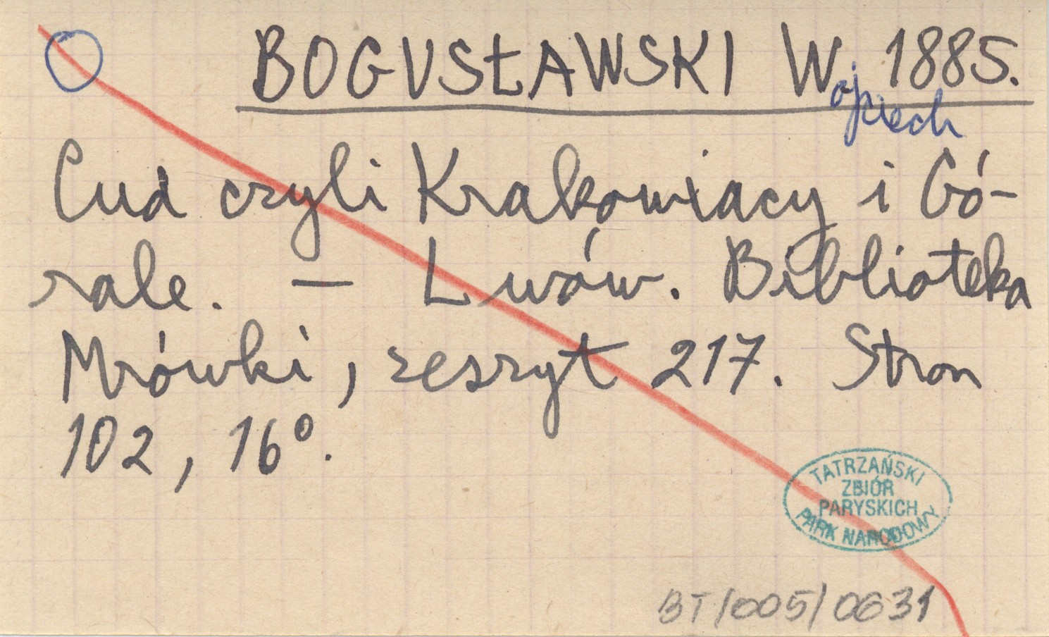 BOGUSŁAWSKI Wojciech 1885 Cud czyli Krakowiacy i Górale.