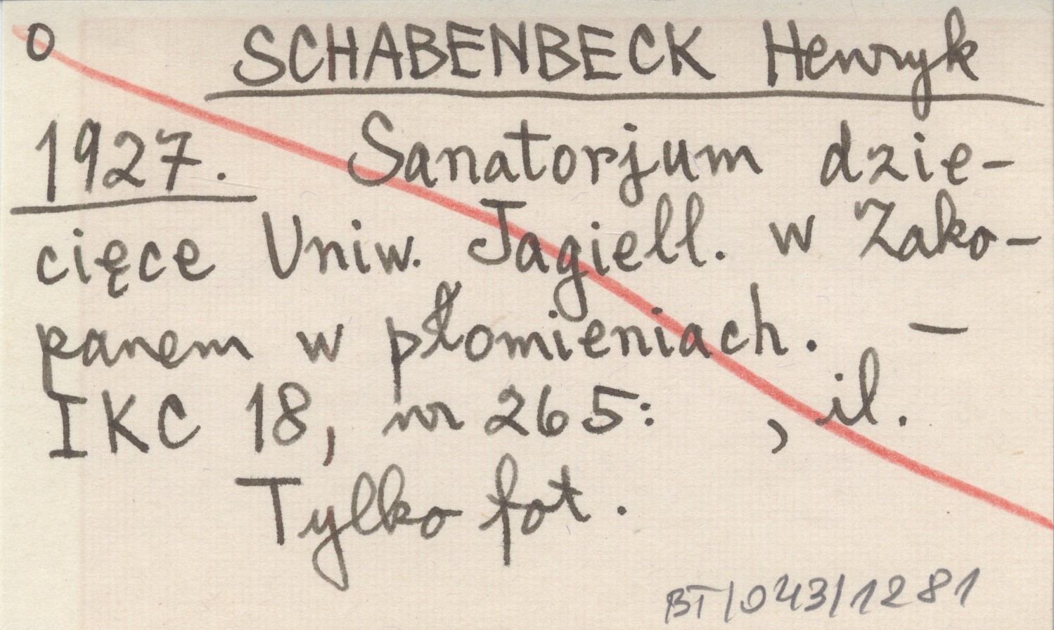 SCHABENBECK Henryk 1927 Sanatorjum dziecięce Uniw. Jagiell. w Zakopanem w płomieniach.