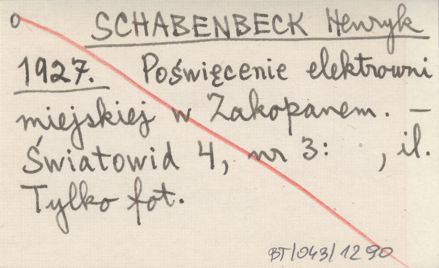 SCHABENBECK Henryk 1927 Poświęcenie elektrowni miejskiej w Zakopanem.