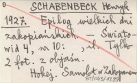 SCHABENBECK Henryk 1927 Epilog wielkich dni zakopiańskich.