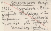 SCHABENBECK Henryk 1927 Geografowie i Etnografowie Słowiańscy w Zakopanem.