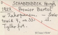 SCHABENBECK Henryk 1927 Premier Bartel w Zakopanem.