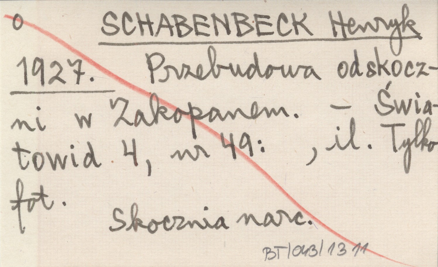 SCHABENBECK Henryk 1927 Przebudowa odskoczni w Zakopanem.