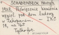 SCHABENBECK Henryk 1928 Poświęcenie kamienia węgiel. pod dom ludowy w Zakopanem.