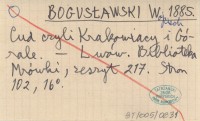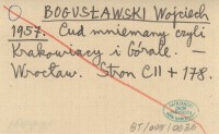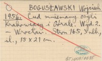 BOGUSŁAWSKI Wojciech 1865 Cud czyli Krakowiacy i Górale, dramat ludowy w 2 aktach podług Bogusławskiego. [Przerobił zapewne Jan K. Turski.].