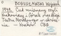 BOGUSŁAWSKI Wojciech 1949 Cud mniemany czyli Krakowiacy i Górale oraz dzieje Teatru Narodowego w skróceniu.