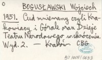 BOGUSŁAWSKI Wojciech 1951 Cud mniemany czyli Krakowiacy i Górale oraz Dzieje Teatru Narodowego w skróceniu.