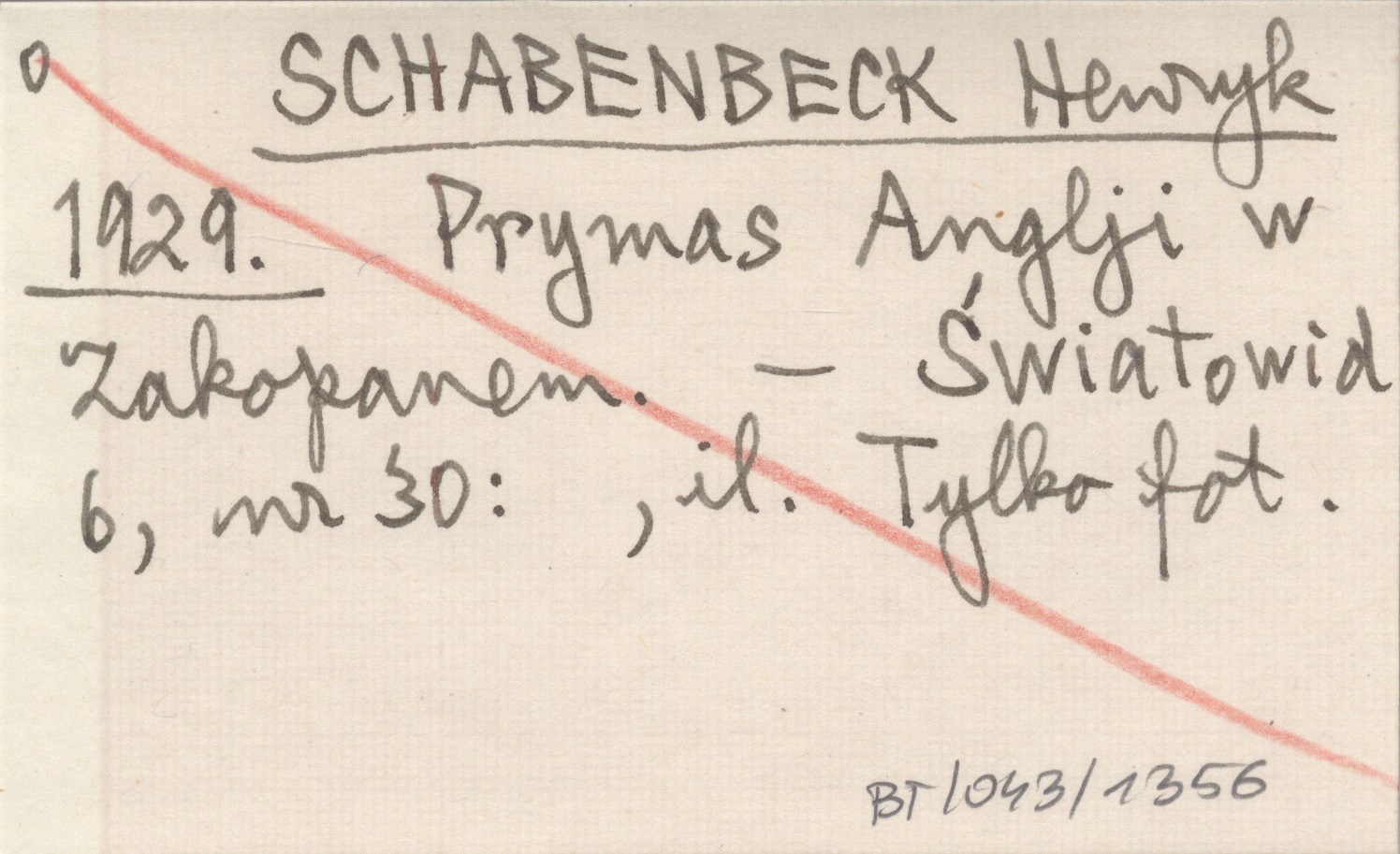 SCHABENBECK Henryk 1929 Prymas Anglji w Zakopanem.