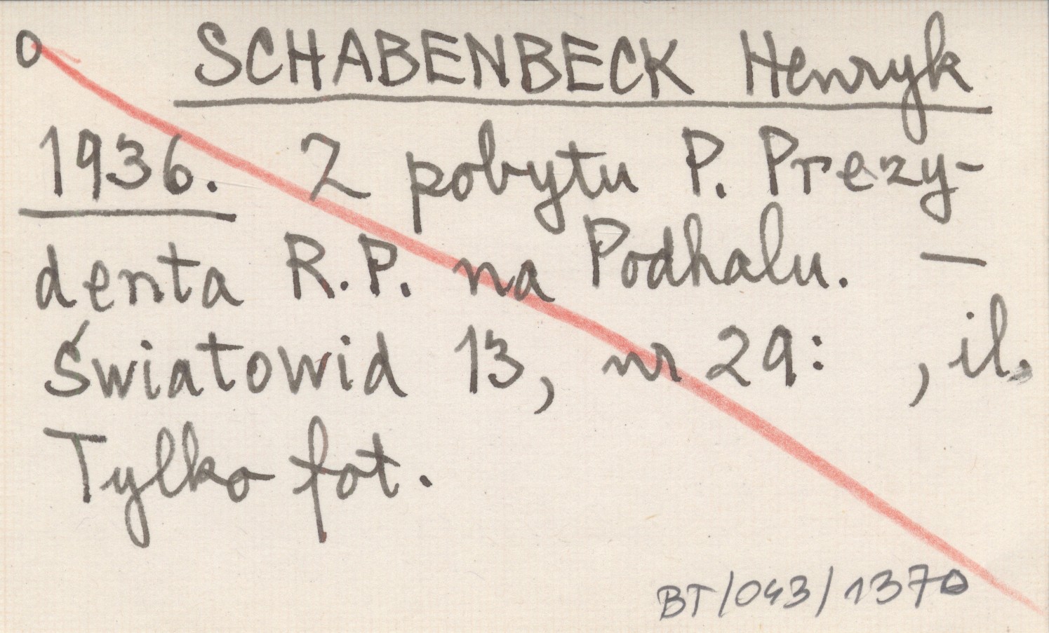 SCHABENBECK Henryk 1936 Z pobytu P. Prezydenta R. P. na Podhalu.