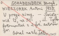 SCHABENBECK Henryk 1937 [Widok zimowy szałasów na hali].