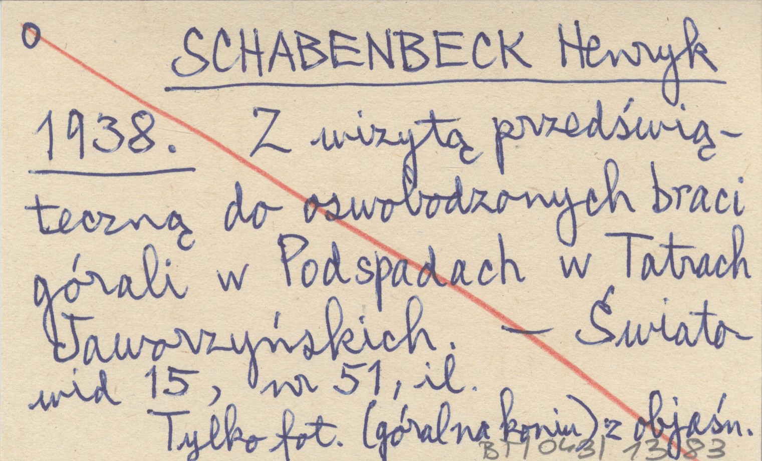 SCHABENBECK Henryk 1938 Z wizytą przedświąteczną do oswobodzonych braci górali w Podspadach w Tatrach Jaworzyńskich.