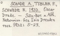 SCHADE A. TOBLER, F. ; SCHWEDE, R. ; 1933 Oscar Drude.