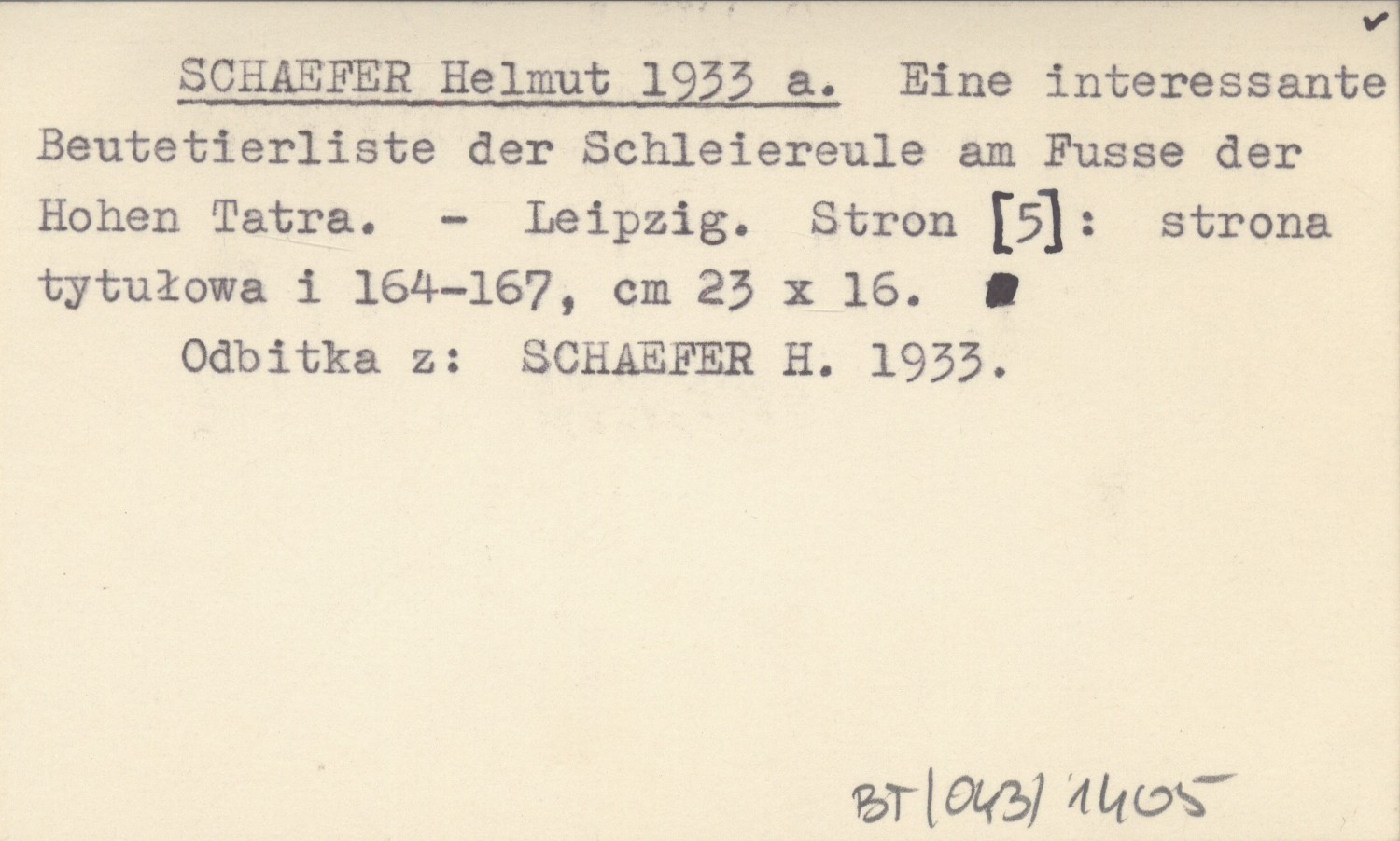 SCHAEFER Helmut 1933 a Eine interessante Beutetierliste der Schleiereule am Fusse der Hohen Tatra.