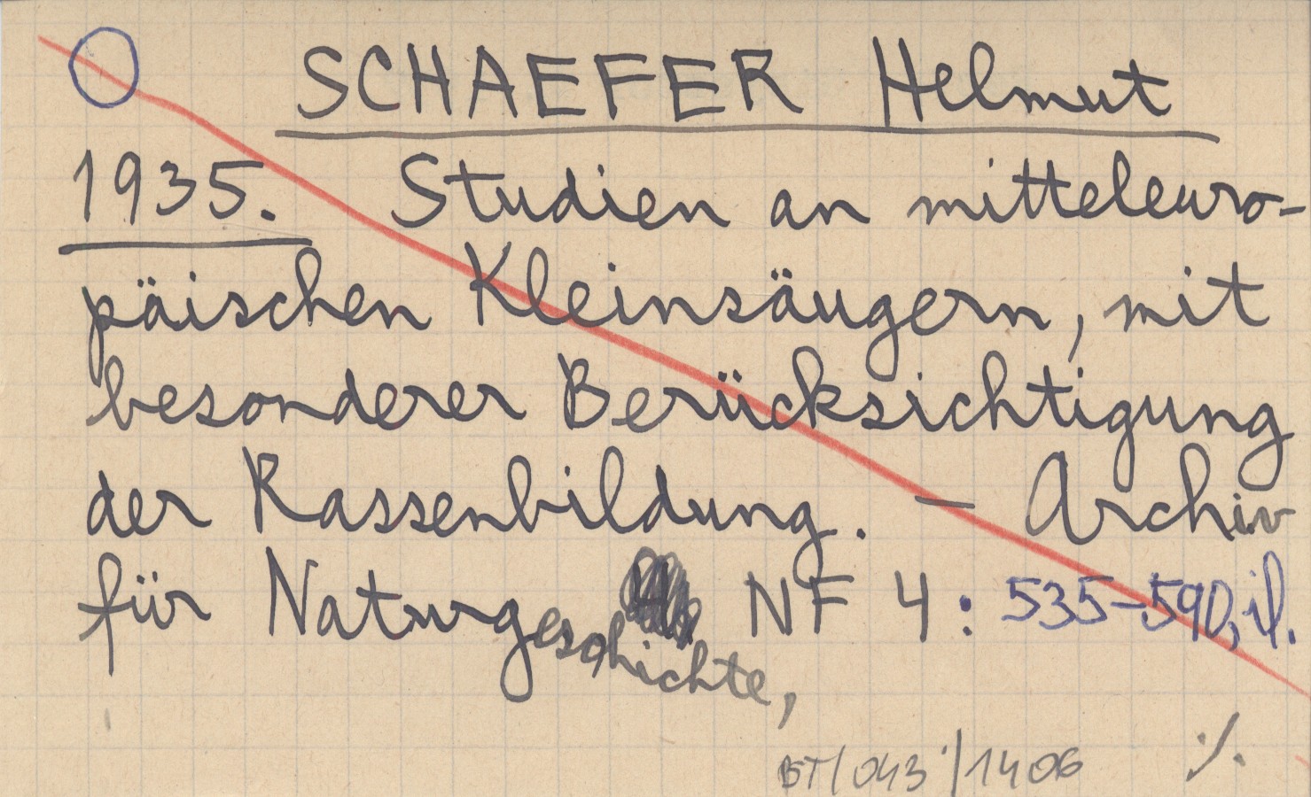 SCHAEFER Helmut 1935 Studien an mitteleuropäischen Kleinsäugern, mit besonderer Berücksichtigung der Rassenbildung.