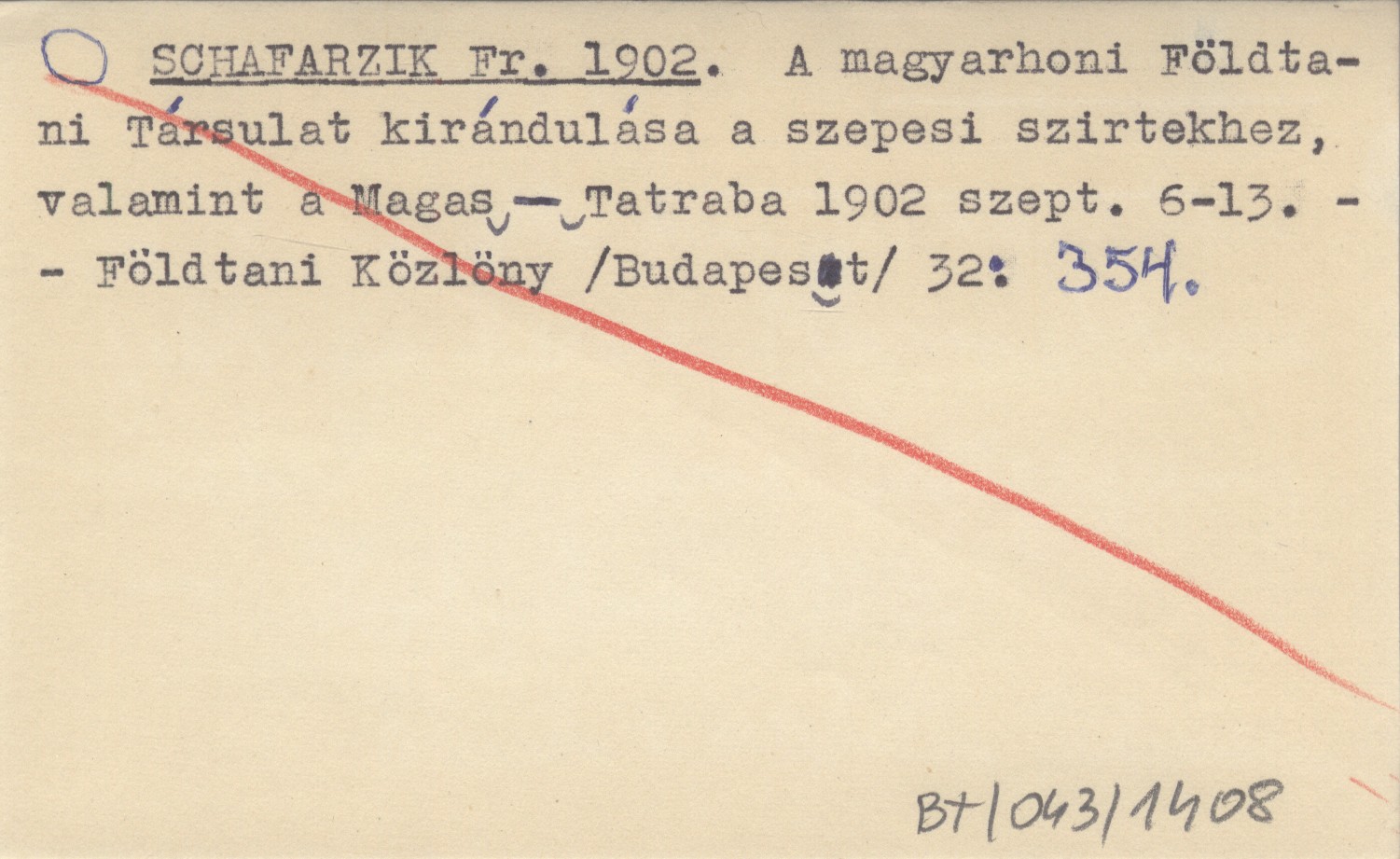 SCHAFARZIK Fr. 1902 A magyarhoni Földtani Társulat kirándulása a szepesi szirtekhez, valamint a Magas-Tatraba 1902 szept. 6-13.