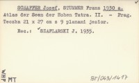 SCHAFFER Josef STUMMER, Franz. ; 1932 Atlas der Seen der Hohen Tatra. III.