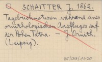 SCHAITTER J. 1862 Tagebuchnotizen während eines ornithologischen Ausfluges auf der Hohen Tatra.