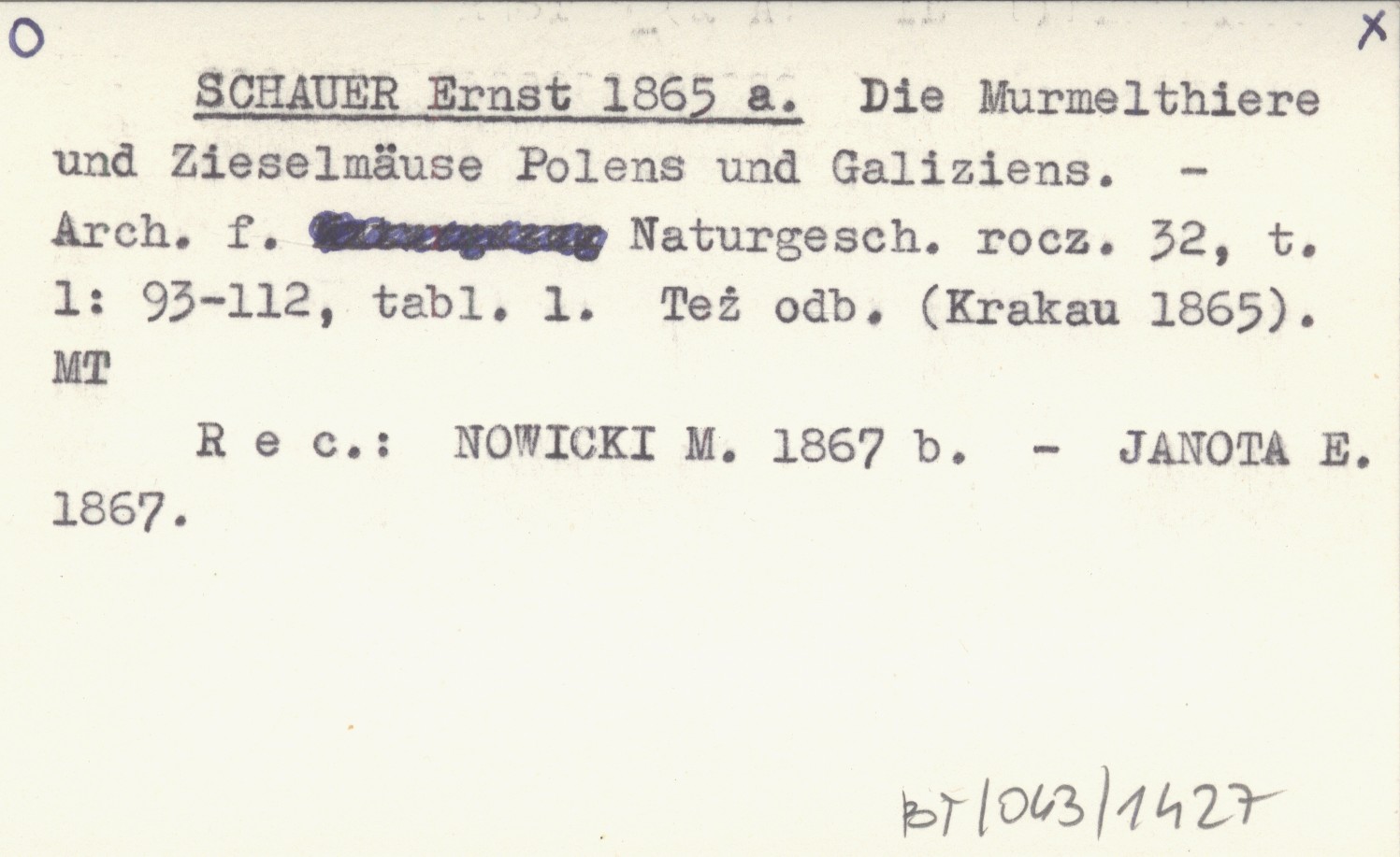 SCHAUER Ernst 1865 a Die Murmelthiere und Zieselmäuse Polens und Galiziens.