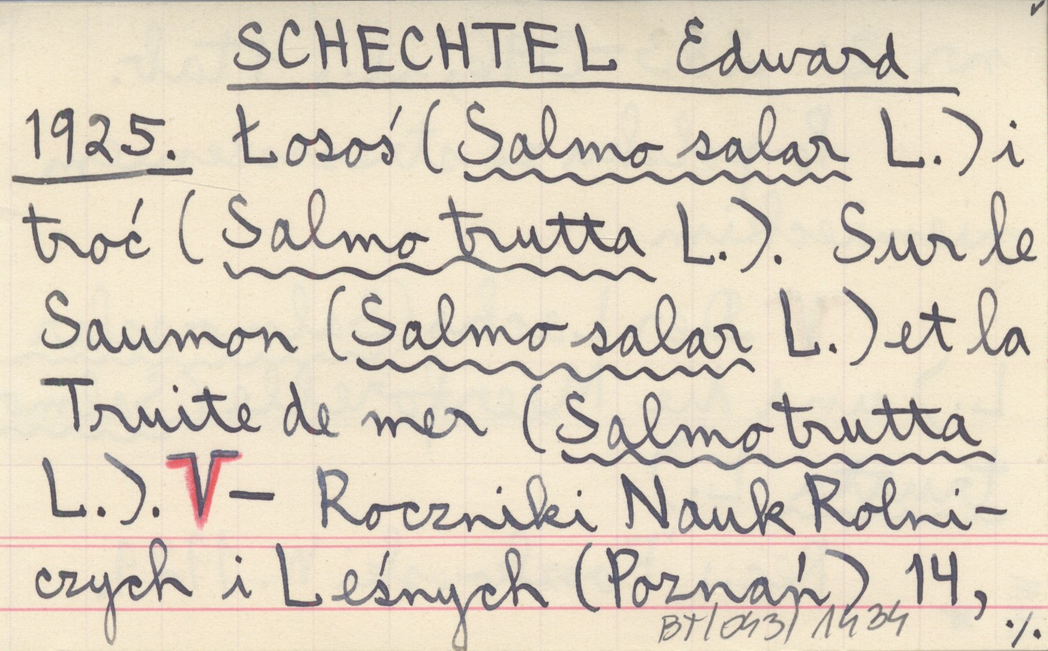SCHECHTEL Edward 1925 Łosoś (Salmo salar L.) i troć (Salmo trutta L.). Sur le Saumon (Salmo salar L.) et la Truite de mer (Salmo trutta L.). Der Lachs (Salmo salar L.) und die Meerforelle (Salmo trutta L.).