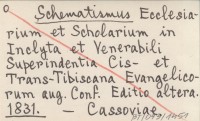 Schematismus Ecclesiarium et Scholarium in Inclyta et Venerabili Superindentia Cis- et Trans-Tibiscana Evangelicorum aug. Conf. Editio altera. 1831