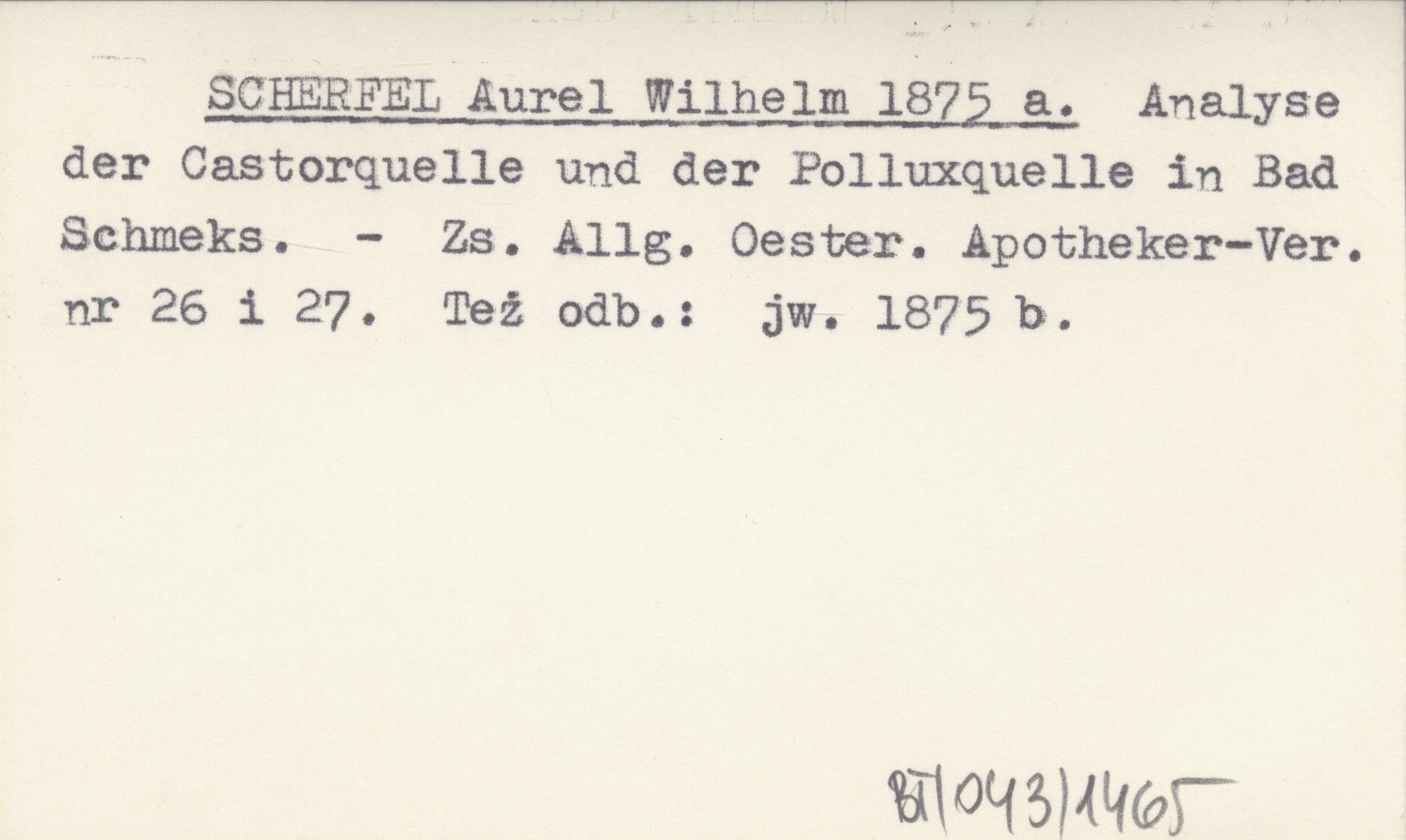 SCHERFEL Aurel Wilhelm 1875 a Analyse der Castorquelle und der Polluxquelle in Bad Schmeks.