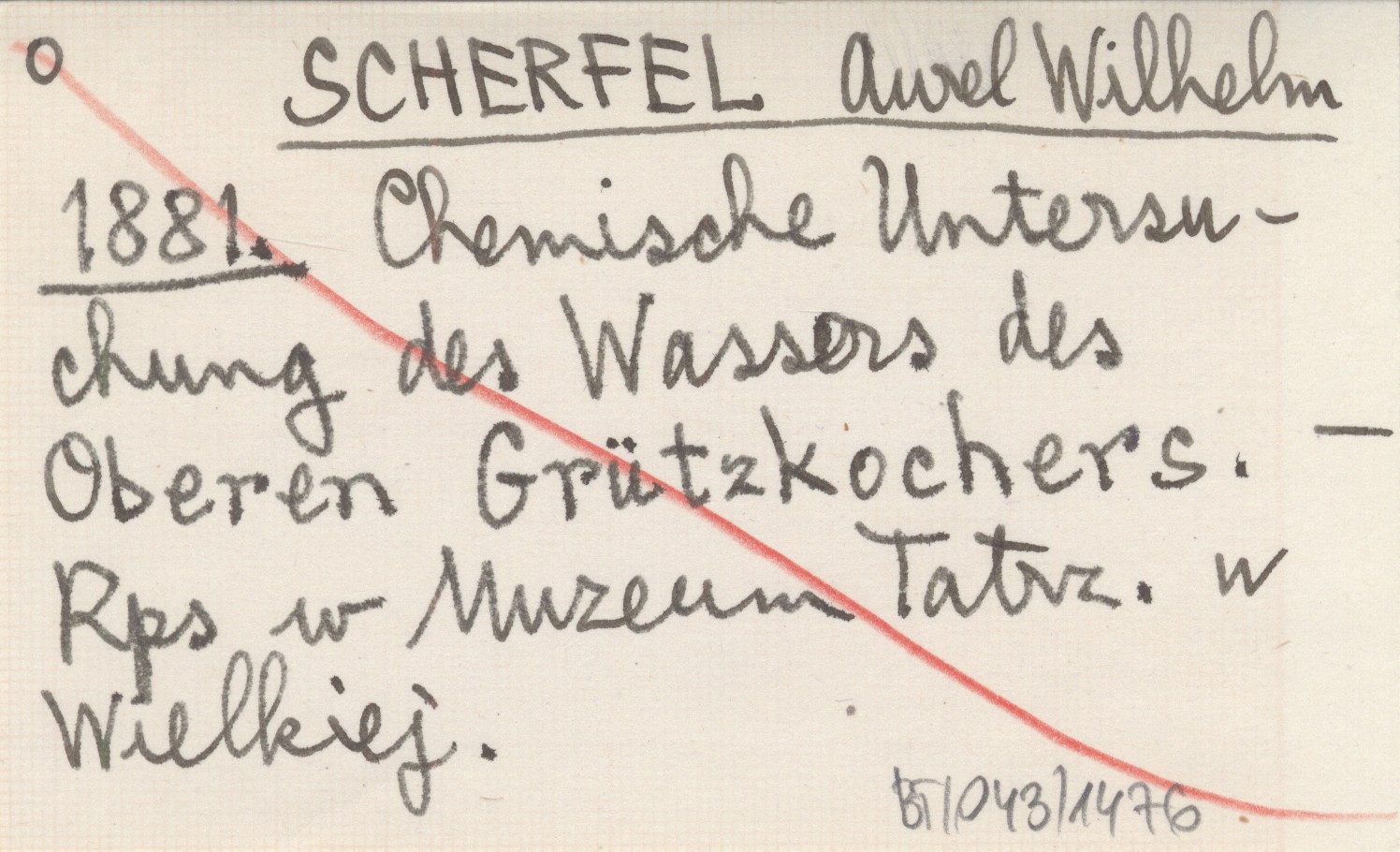 SCHERFEL Aurel Wilhelm 1881 Chemische Untersuchung des Wassers des Oberen Grützkochers.