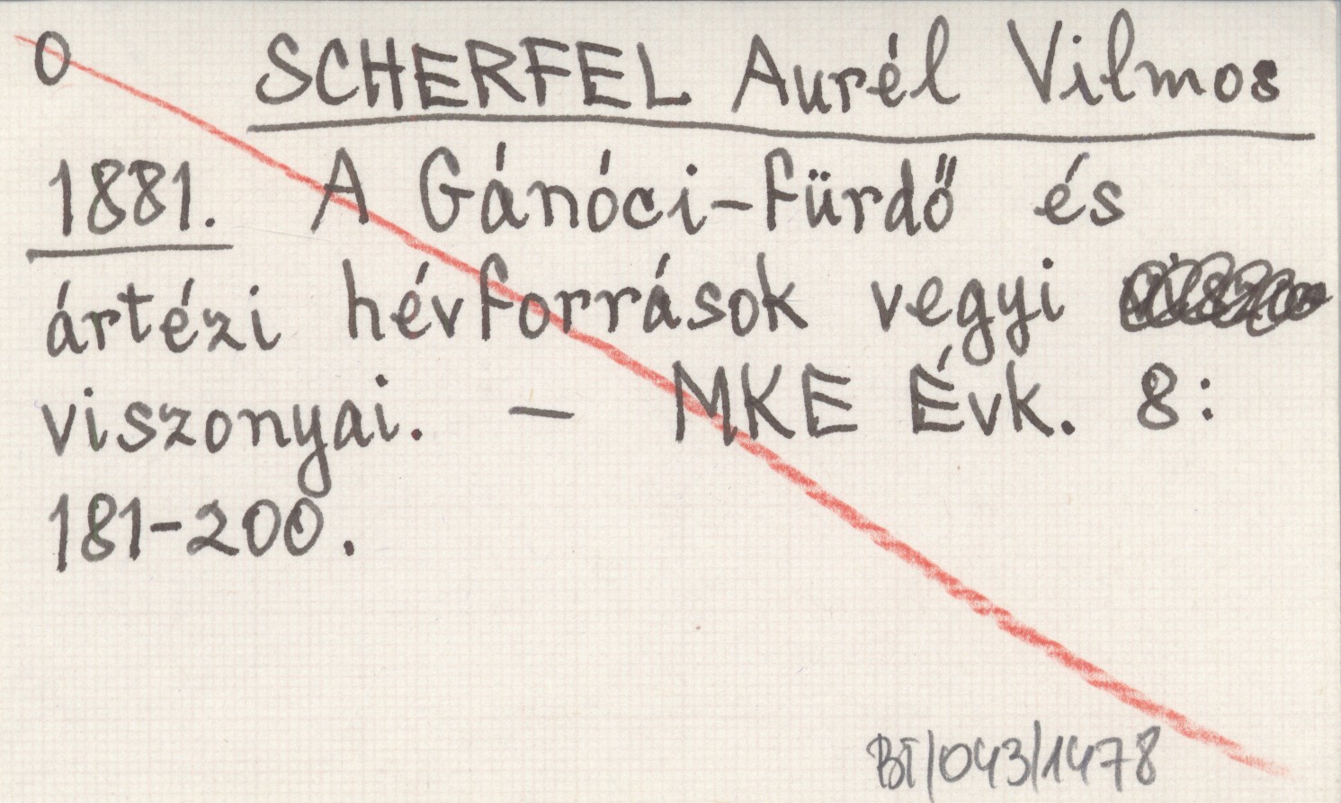 SCHERFEL Aurél Vilmos 1881 A Gánóci-fürdő és ártézi hévforrások vegyi viszonyai.