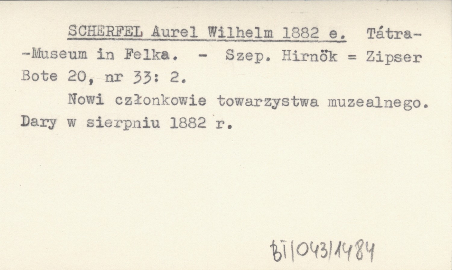 Szepesi Hirnök = Zipser Bote, 20, nr 33: 2. Nowi członkowie towarzystwa muzealnego. Dary w sierpniu 1882 r.