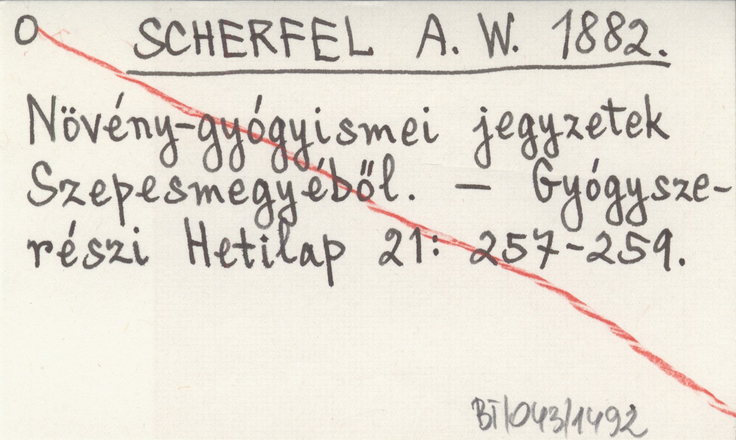 SCHERFEL A. W. 1882 Növény-gyógyismei jegyzetek Szepesmegyéből.