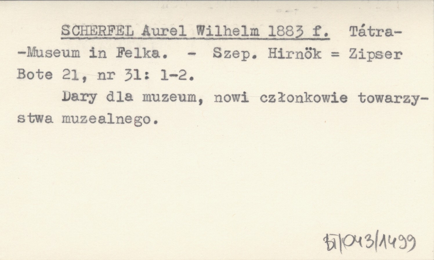 SCHERFEL Aurel Wilhelm 1883 f Tátra-Museum in Felka.