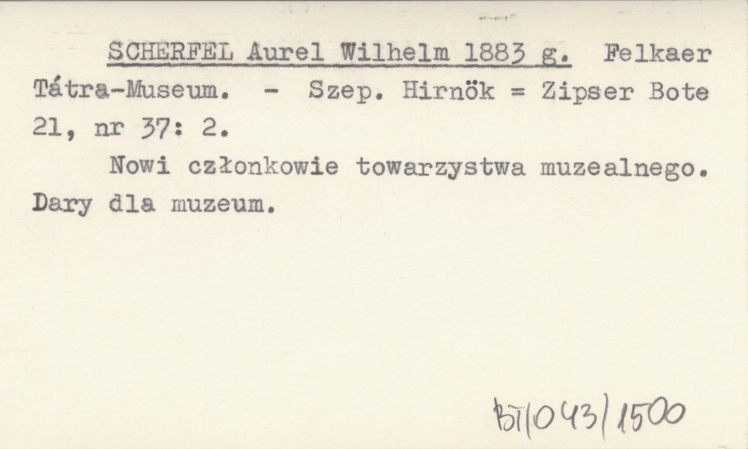 SCHERFEL Aurel Wilhelm 1883 g Felkaer Tátra-Museum.