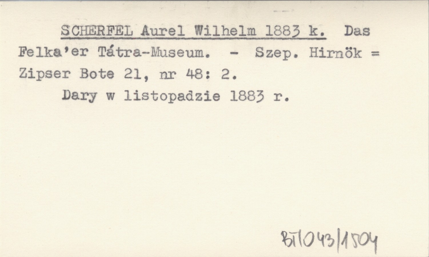 SCHERFEL Aurel Wilhelm 1883 k Das Felka'er Tátra-Museum.