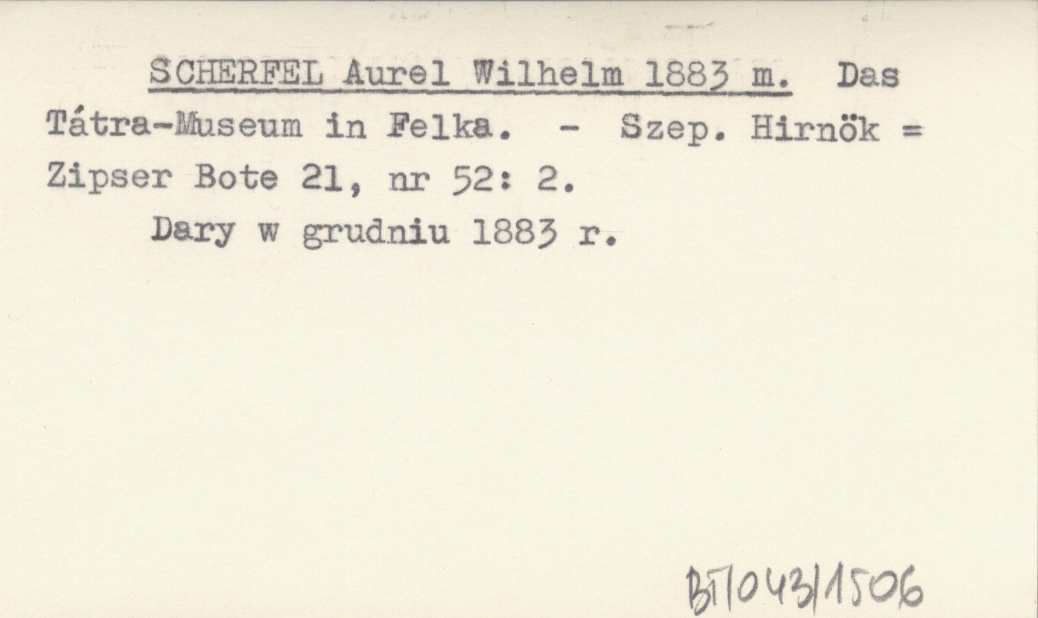 SCHERFEL Aurel Wilhelm 1883 m Das Tátra-Museum in Felka.