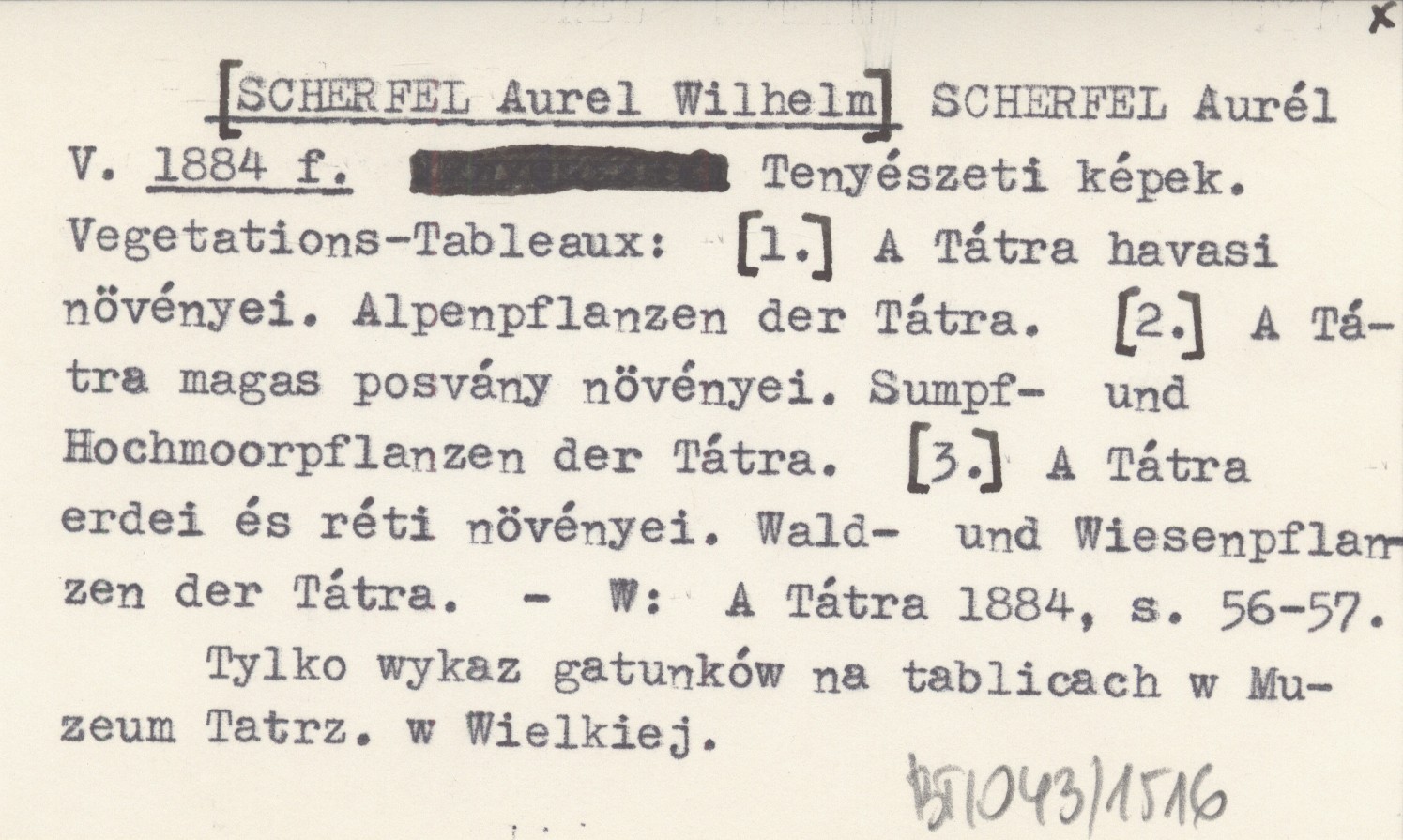 A Tátra 1884. , S. 56-57. Tylko wykaz gatunków na tablicach w Muzeum Tatrz. w Wielkiej.