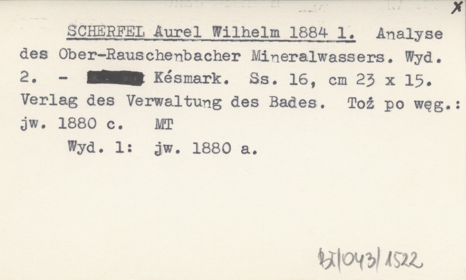 WYD: 2 Késmark , 16 s., 23x15 cm. Verlag des Verwaltung des Bades. Toż po węg.: jw. 1880 c. Wyd. 1: jw. 1880 a.