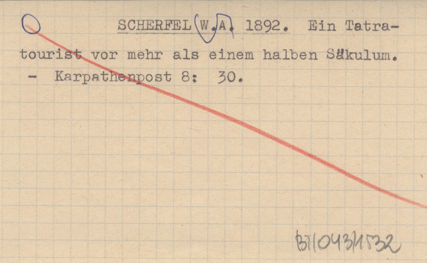 SCHERFEL W. A. 1892 Ein Tatratourist vor mehr als einem halben Säkulum.
