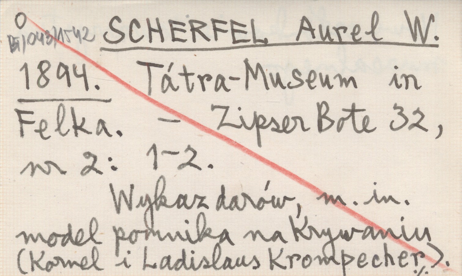 Zipser Bote, 32, nr 2: 1-2. Wykaz darów, m.in. model pomnika na Krywaniu (Kornel i Ladislaus Krompecher). Nowi członkowie towarzystwa muzealnego.