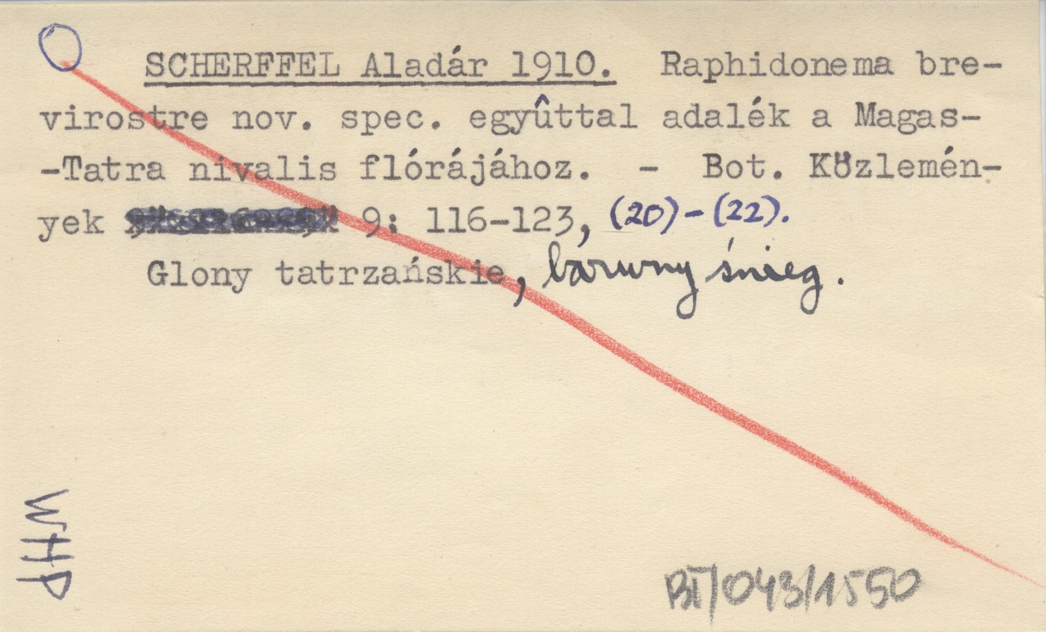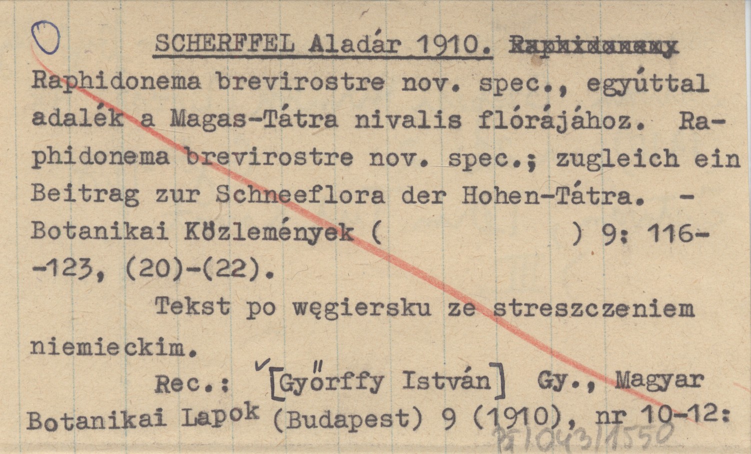 SCHERFFEL Aladár 1910 Raphidonema brevirostre nov. spec., egyúttal adalék a Magas-Tátra nivalis flórájához. Raphidonema brevirostre nov. spec.; zugleich ein Beitrag zur Schneeflora der Hohen-Tátra.