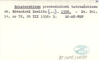 Projekt Digitalizacja fiszek z Bibliografią Tatr i Podtatrza Witolda Henryka Paryskiego jest finansowany ze środków Ministra Kultury i Dziedzictwa Narodowego oraz Tatrzańskiego Parku Narodowego.