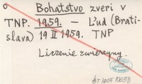 Bohatstvo zveri v TNP. 1959