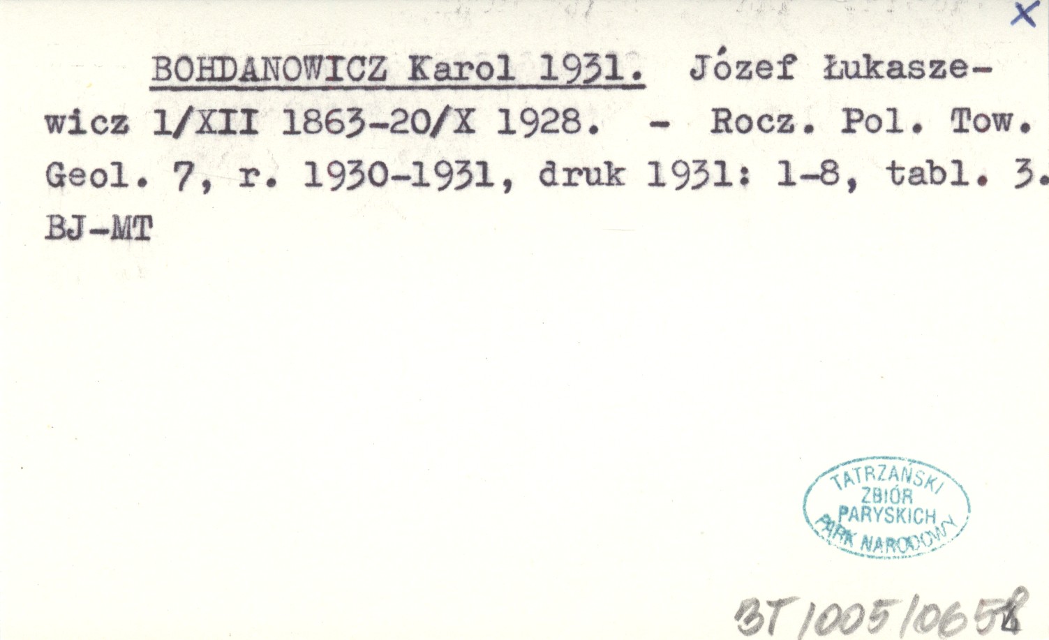 Rocznik Polskiego Towarzystwa Geologicznego, 7, r. 1930-1931, druk 1931: 1-8, 3 k. tabl.