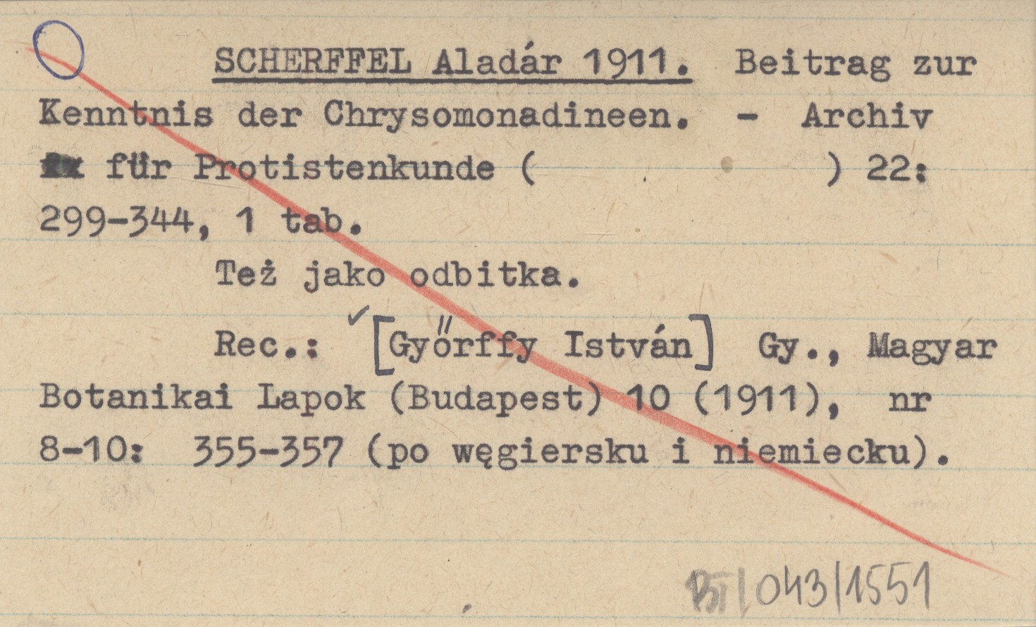 Archiv für Protistenkunde, 22: 299-344, 1 k. tabl. Też jako odbitka. REC: [GYŐRFFY István] Gy., Magyar Botanikai Lapok (Budapest) 10 (1911), nr 8-10: 355-357 (po węgiersku i niemiecku).