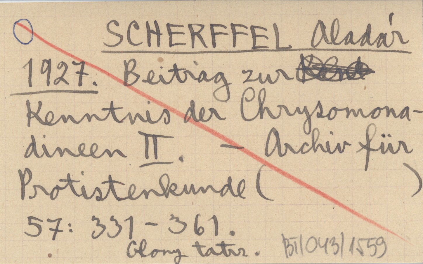 SCHERFFEL Aladár 1927 Beitrag zur Kenntnis der Chytridineen II.