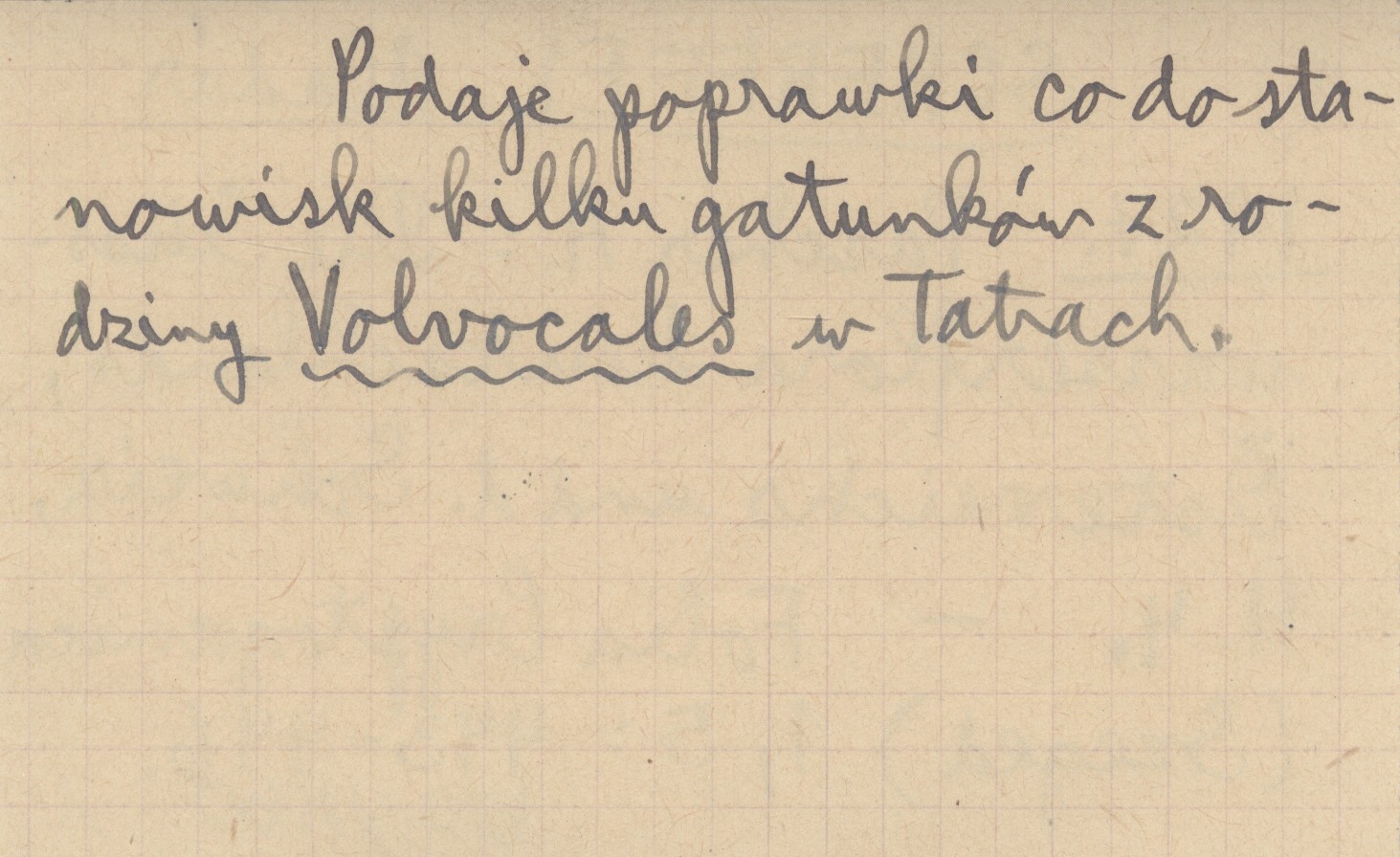 Folia Cryptogamica (Szeged) , 1, 5: 443-446. Podaje poprawki co do stanowisk kilku gatunków z rodziny Volvocales w Tatrach.