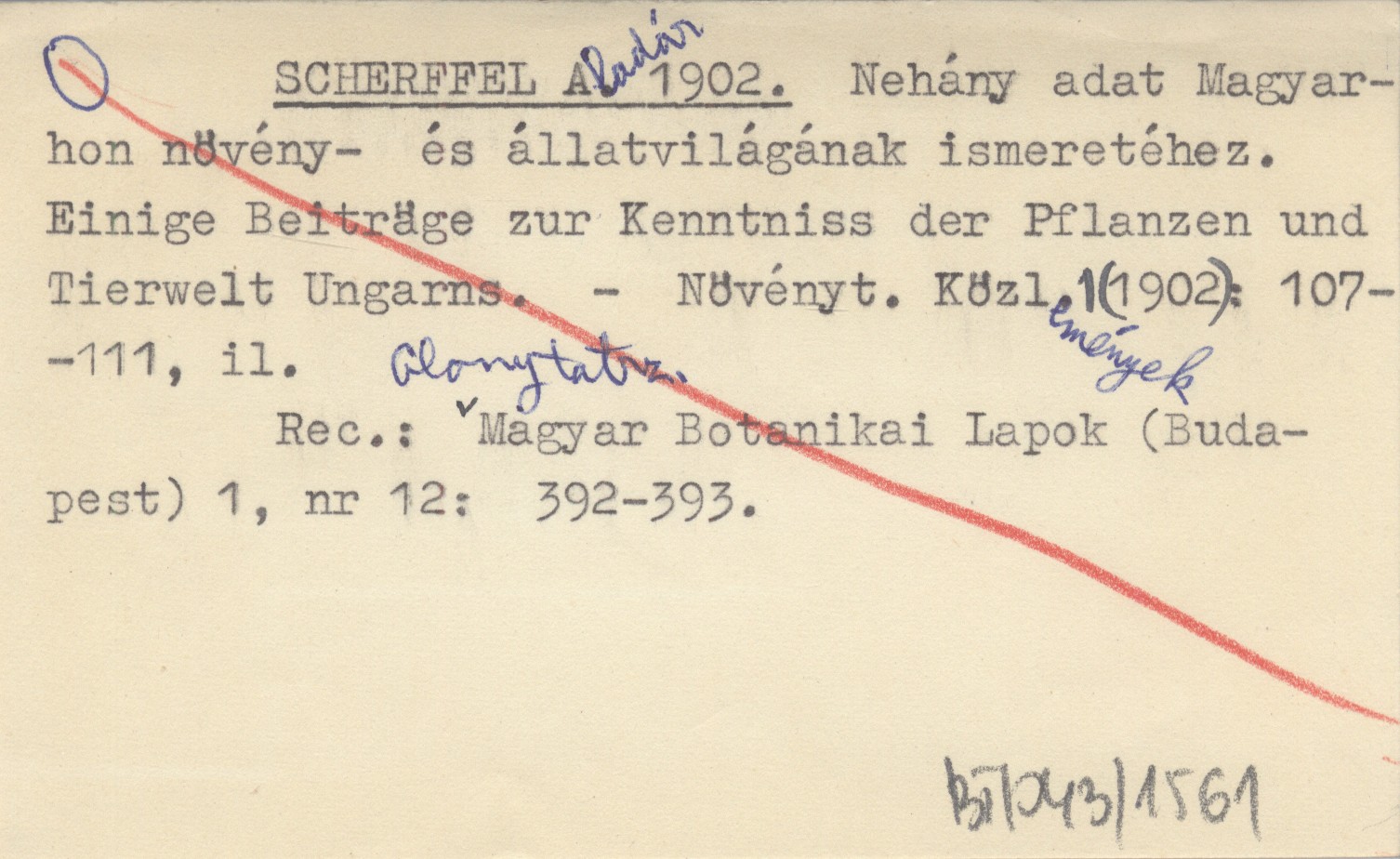 SCHERFFEL Aladár 1902 Nehány adat Magyarhon növény- és állatvilágának ismeretéhez. Einige Beiträge zur Kenntniss der Pflanzen und Tierwelt Ungarns.