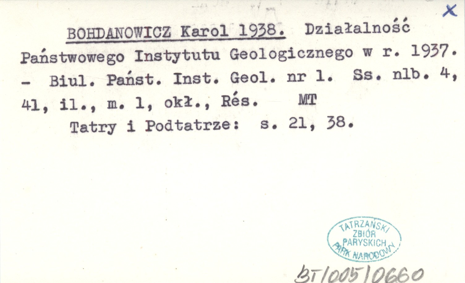 Biuletyn Państwowego Instytutu Geologicznego, Nr 1: [4], 41, il., 1 mapa, okł., Rés. Tatry i Podtatrze: s. 21, 38.